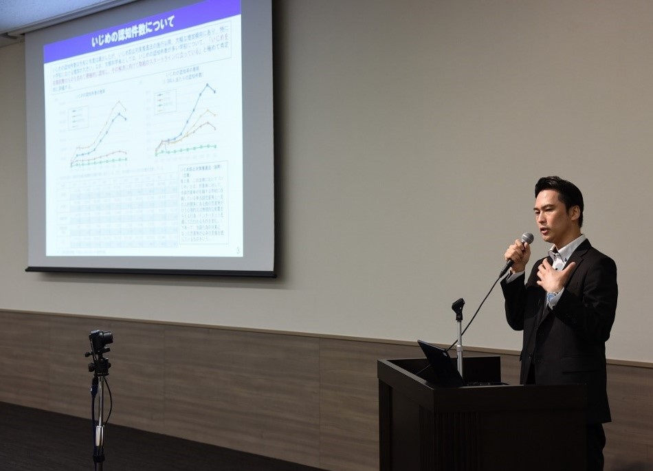 続いて、小林雅彦氏〔文部科学省初等中等教育局児童生徒課生徒指導室長〕よりいただきました講演「生徒指導の今とこれから」 では、児童生徒のいじめ、不登校、自殺等の諸課題の現状のほか、スクールカウンセラーが助言を行わなかったり、児童生徒に関する情報が学級担任と共有されなかったりするという課題も見受けられている現状を踏まえ、チーム学校に基づくスクールカウンセラー等の専門スタッフの活動のさらなる充実や、学校での効果的な活用の必要性が述べられました。